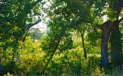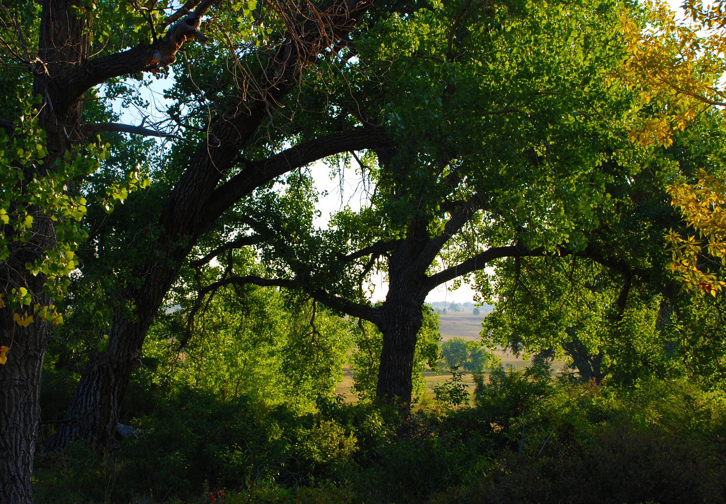 Cottonwoods and yellow grasses