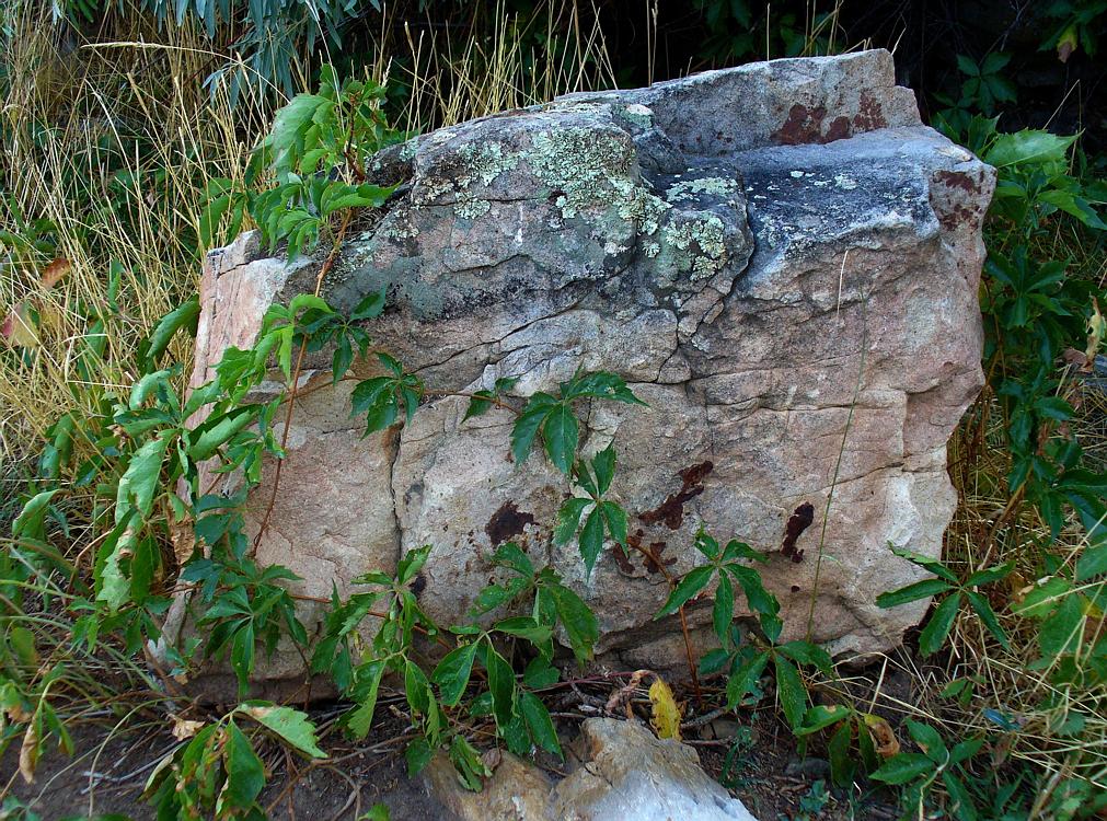 Virginia Creeper growing over a boulder |